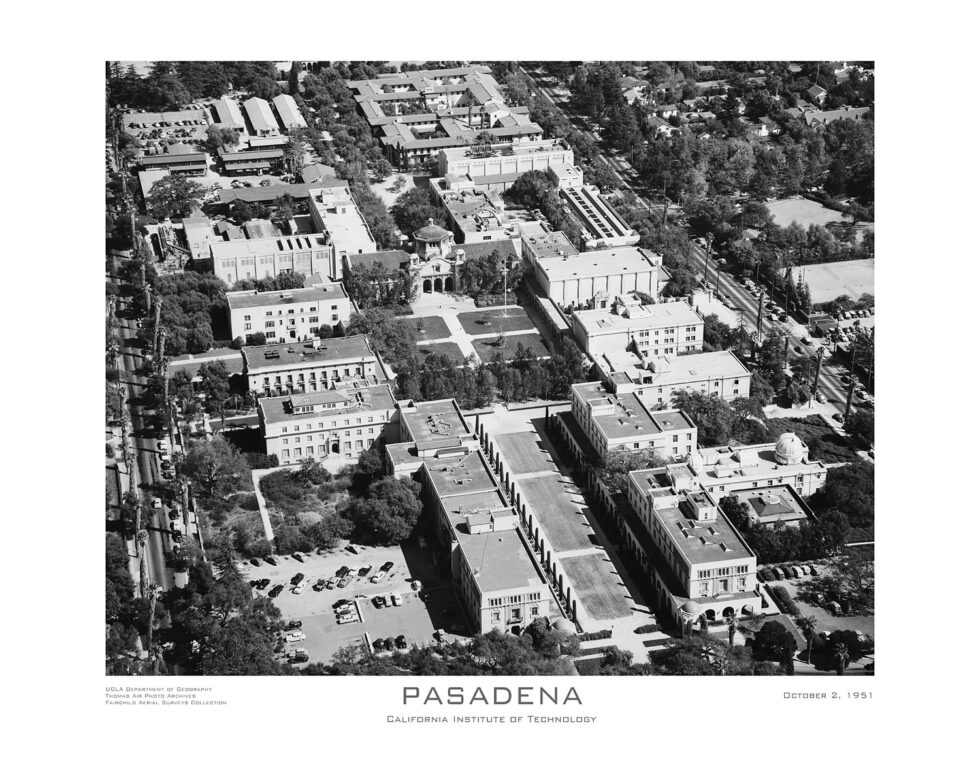 Starting as a vocational school by Amos Throop in 1889, Caltech has evolved into one of the world’s great centers for the study in science and engineering. At the time of this photo from April to December, 1951 Caltech, with its expertise in rocketry and nuclear physics, served as host for the classified Project Vista aimed at improving the relationship between tactical air support and ground troops. During this time, more than a quarter of Caltech’s faculty and a group of outside scientists staffed the project.