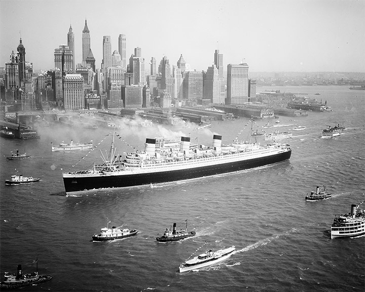 Though the RMS Queen Mary failed to take the Blue Riband, an accolade given to the fastest passenger liner with regular service across the Atlantic, from France’s SS Normandie on her maiden voyage, she did win it two months later. Among one of the most luxurious ocean liners ever built, with stunning Art Deco interiors, the Queen Mary was converted to a troopship during the Second World War. In July, 1943, she carried 16,683 soldiers and crew, a record that still stands for the largest number of passengers ever transported aboard a single vessel. After the Second World War, she was refitted for passenger service, which she continued until 1967. She is currently permanently moored at Long Beach, California.