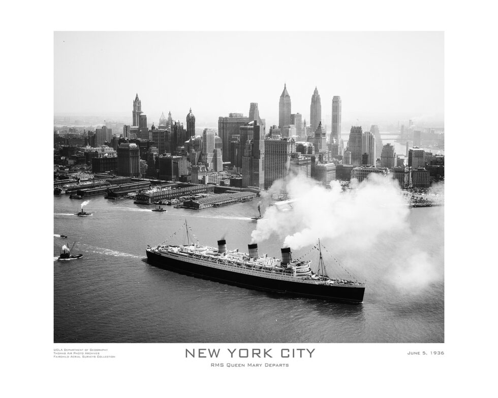 RMS Queen Mary leaving New York, June 5, 1936