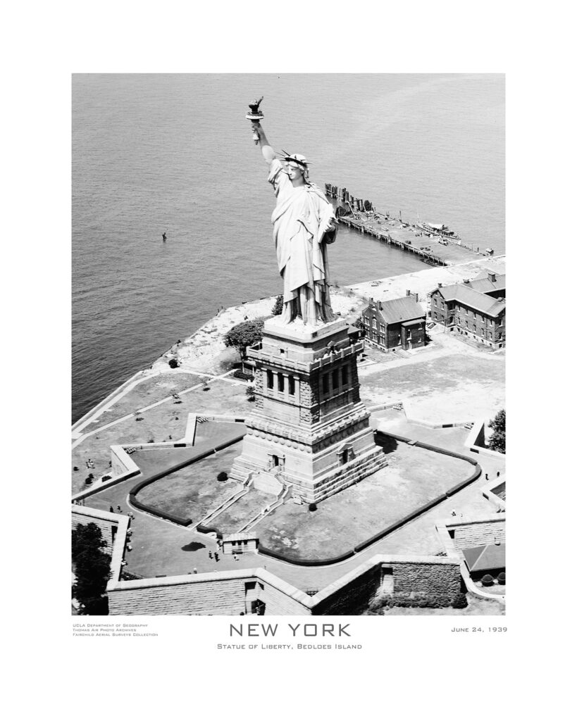 The copper Statue of Liberty was a gift from the people of France to the people of the United States and was dedicated in 1886. It was designed by Frรฉdรฉric Auguste Bartholdi based on a metal framework created by Gustave Eiffel (construction on the Eiffel Tower was begun in 1887). The foundation and pedestal in the form of an 11-pointed star allow the Statue to face southeast, greeting ships entering New York from the Atlantic Ocean. One of the most recognizable statues in the world, the Statue of Liberty has been in innumerable film and television productions, being destroyed in many (notably in The Planet of the Apes, Independence Day, and Cloverfield ). The dramatic climax of Alfred Hitchcock’s 1942 movie Saboteur takes place in the torch.