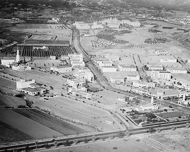 In 1933 Westwood Village consisted of just a few buildings south of the original iconic buildings of UCLA